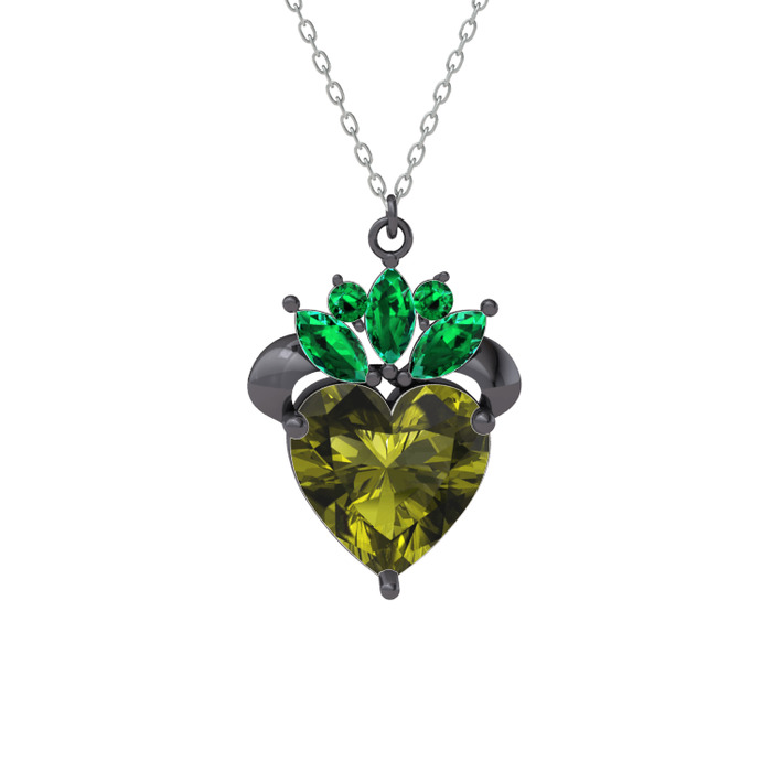 Peridot ve yeşil kuvars 925 ayar siyah rodyum kaplama gümüş kolye (40 cm beyaz altın rolo zincir)
