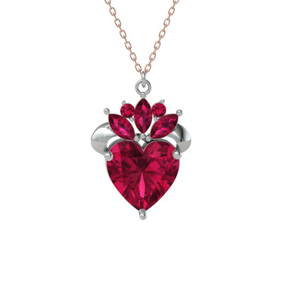 Rodolit garnet 8 ayar beyaz altın kolye (40 cm gümüş rolo zincir)