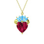 Rodolit garnet ve akuamarin 925 ayar altın kaplama gümüş kolye (40 cm altın rolo zincir)
