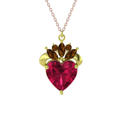 Rodolit garnet ve dumanlı kuvars 18 ayar altın kolye (40 cm rose altın rolo zincir)