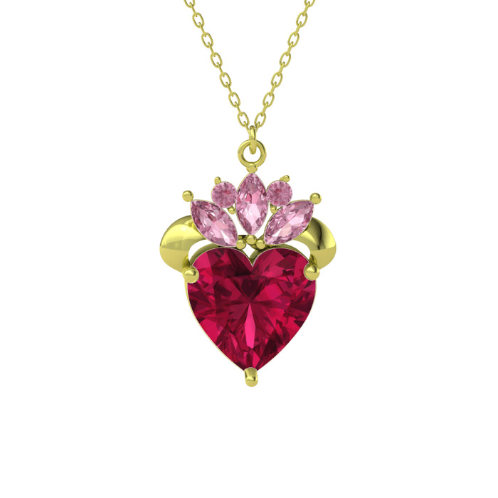 Rodolit garnet ve pembe kuvars 18 ayar altın kolye (40 cm gümüş rolo zincir)