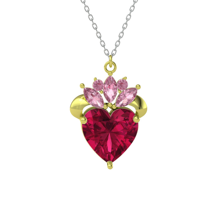 Rodolit garnet ve pembe kuvars 8 ayar altın kolye (40 cm beyaz altın rolo zincir)