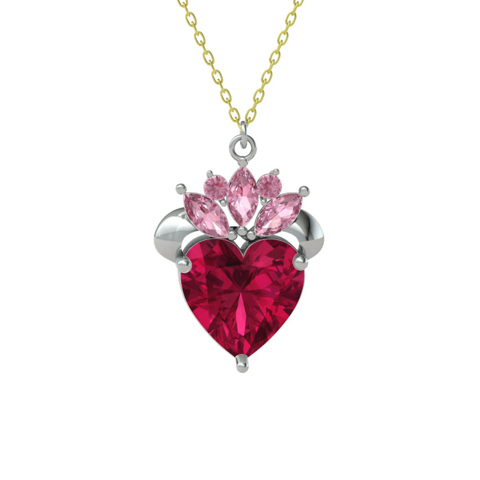 Rodolit garnet ve pembe kuvars 8 ayar beyaz altın kolye (40 cm altın rolo zincir)