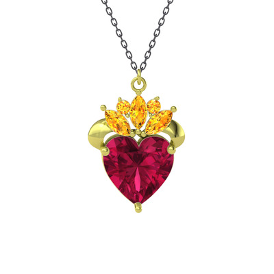 Rodolit garnet ve sitrin 8 ayar altın kolye (40 cm gümüş rolo zincir)