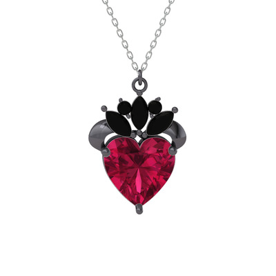 Rodolit garnet ve siyah zirkon 925 ayar siyah rodyum kaplama gümüş kolye (40 cm beyaz altın rolo zincir)