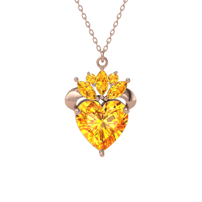 Sitrin 14 ayar rose altın kolye (40 cm gümüş rolo zincir)