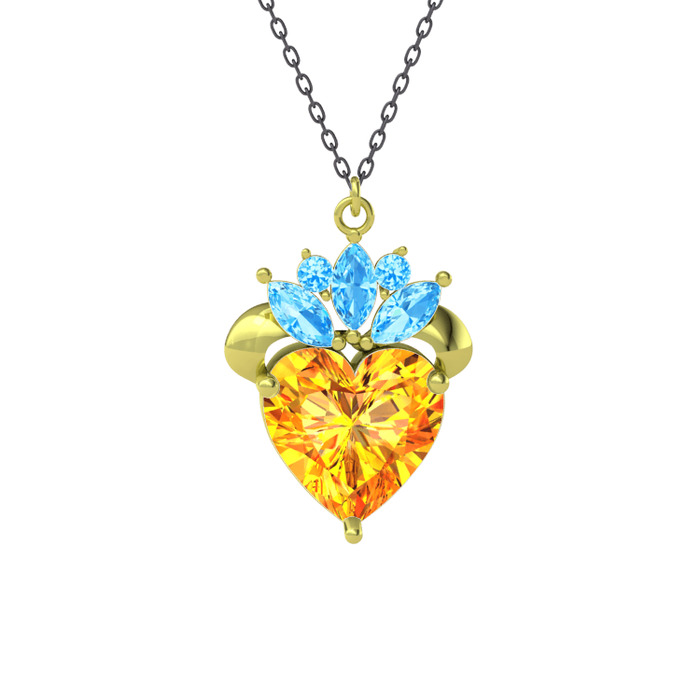 Sitrin ve akuamarin 14 ayar altın kolye (40 cm gümüş rolo zincir)