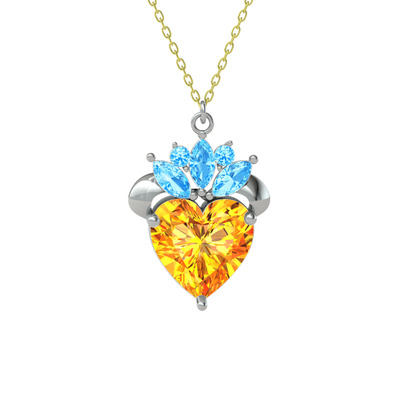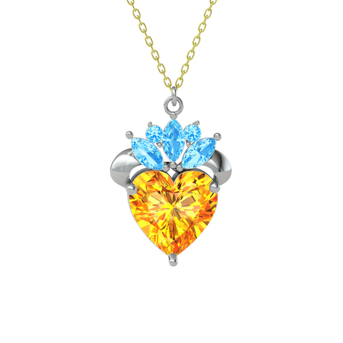Sitrin ve akuamarin 18 ayar beyaz altın kolye (40 cm altın rolo zincir)