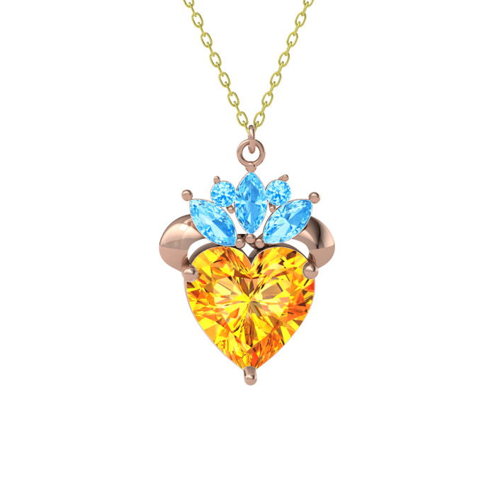 Sitrin ve akuamarin 8 ayar rose altın kolye (40 cm gümüş rolo zincir)