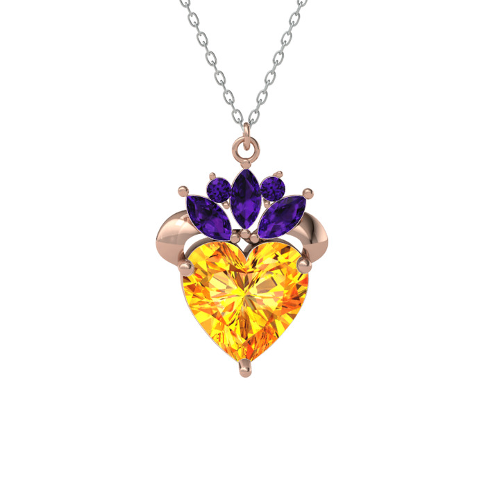 Sitrin ve ametist 18 ayar rose altın kolye (40 cm beyaz altın rolo zincir)