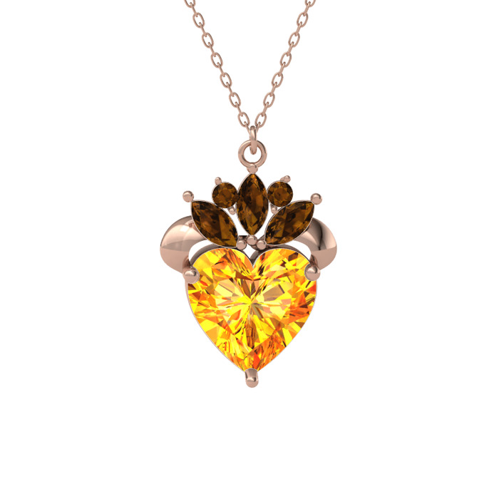Sitrin ve dumanlı kuvars 14 ayar rose altın kolye (40 cm rose altın rolo zincir)