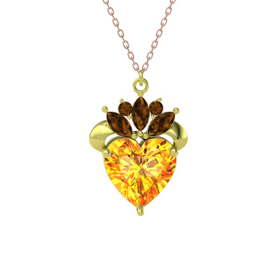 Sitrin ve dumanlı kuvars 18 ayar altın kolye (40 cm gümüş rolo zincir)
