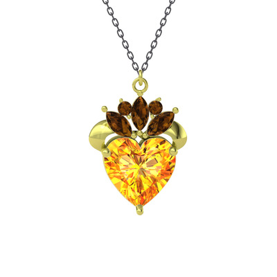 Sitrin ve dumanlı kuvars 8 ayar altın kolye (40 cm gümüş rolo zincir)