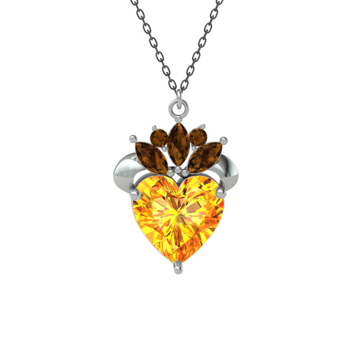 Sitrin ve dumanlı kuvars 8 ayar beyaz altın kolye (40 cm gümüş rolo zincir)