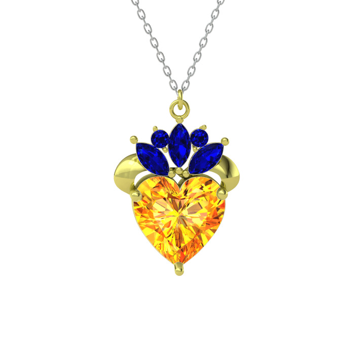 Sitrin ve lab safir 925 ayar altın kaplama gümüş kolye (40 cm gümüş rolo zincir)