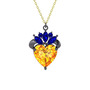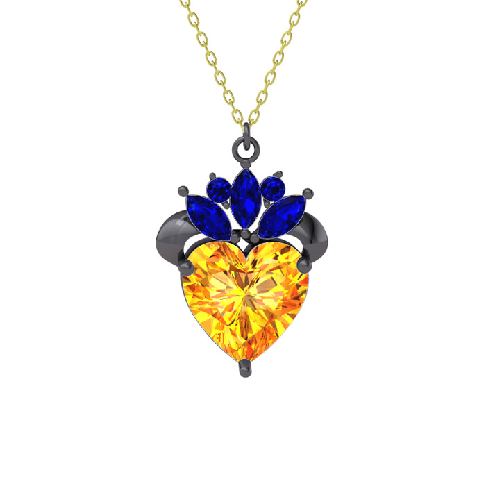 Sitrin ve lab safir 925 ayar siyah rodyum kaplama gümüş kolye (40 cm altın rolo zincir)