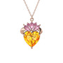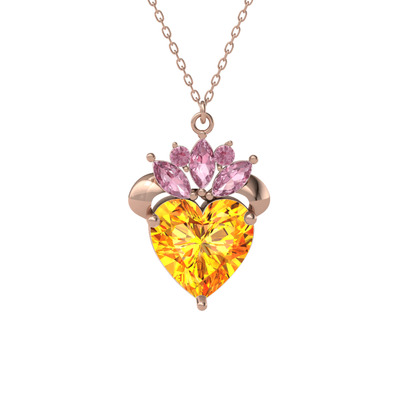 Sitrin ve pembe kuvars 8 ayar rose altın kolye (40 cm gümüş rolo zincir)
