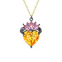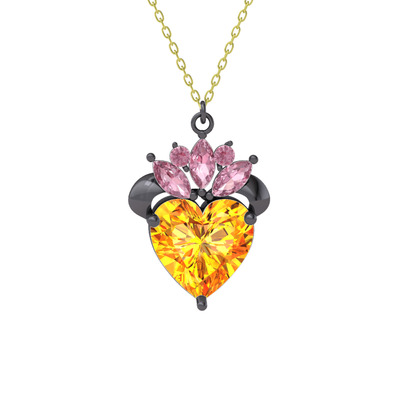 Sitrin ve pembe kuvars 925 ayar siyah rodyum kaplama gümüş kolye (40 cm altın rolo zincir)