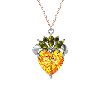 Sitrin ve peridot 925 ayar gümüş kolye (40 cm gümüş rolo zincir)