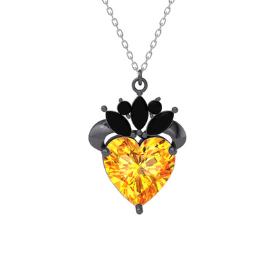 Sitrin ve siyah zirkon 925 ayar siyah rodyum kaplama gümüş kolye (40 cm beyaz altın rolo zincir)