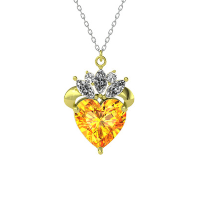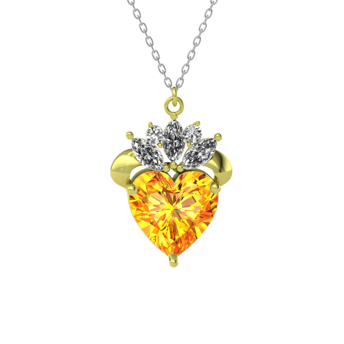 Sitrin ve swarovski 14 ayar altın kolye (40 cm beyaz altın rolo zincir)