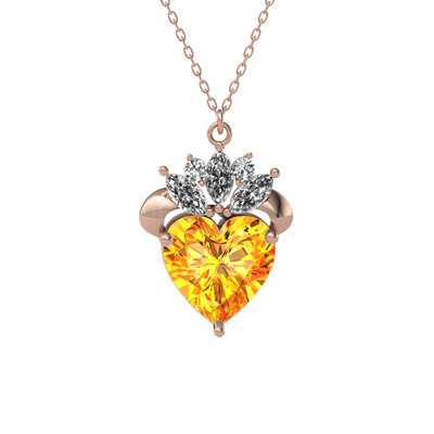 Sitrin ve swarovski 18 ayar rose altın kolye (40 cm rose altın rolo zincir)