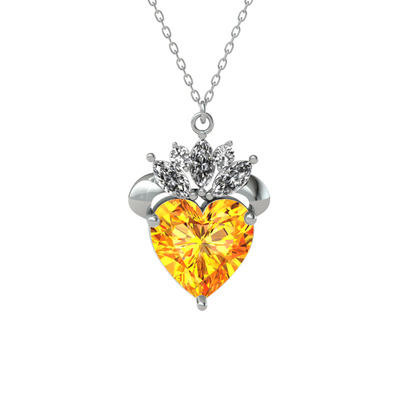 Sitrin ve swarovski 8 ayar beyaz altın kolye (40 cm beyaz altın rolo zincir)