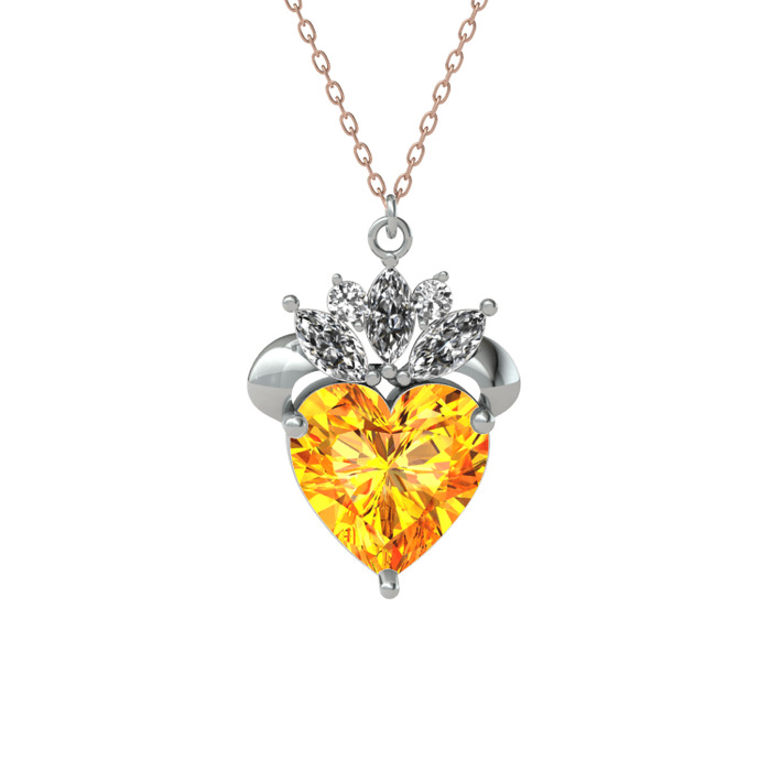 Sitrin ve swarovski 925 ayar gümüş kolye (40 cm rose altın rolo zincir)