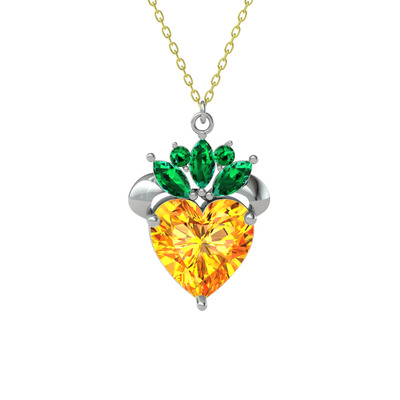 Sitrin ve yeşil kuvars 14 ayar beyaz altın kolye (40 cm altın rolo zincir)