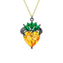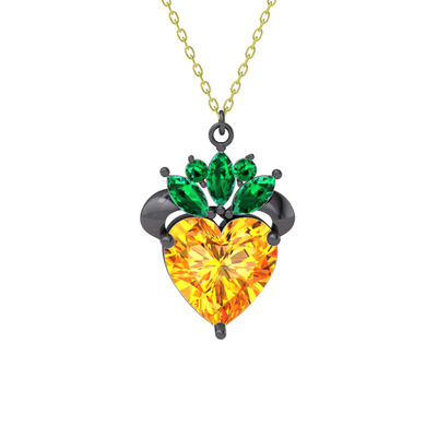 Sitrin ve yeşil kuvars 925 ayar siyah rodyum kaplama gümüş kolye (40 cm altın rolo zincir)