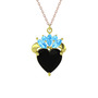 Siyah zirkon ve akuamarin 14 ayar altın kolye (40 cm rose altın rolo zincir)