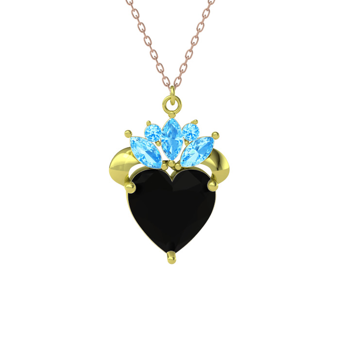 Siyah zirkon ve akuamarin 925 ayar altın kaplama gümüş kolye (40 cm rose altın rolo zincir)