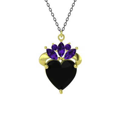 Siyah zirkon ve ametist 18 ayar altın kolye (40 cm gümüş rolo zincir)