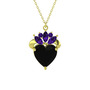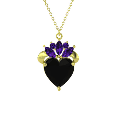 Siyah zirkon ve ametist 925 ayar altın kaplama gümüş kolye (40 cm altın rolo zincir)