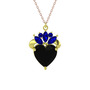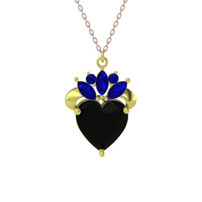 Siyah zirkon ve lab safir 925 ayar altın kaplama gümüş kolye (40 cm rose altın rolo zincir)