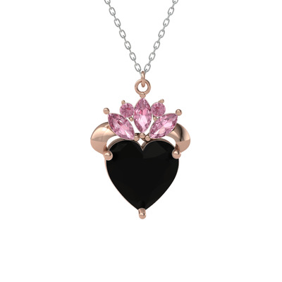 Siyah zirkon ve pembe kuvars 14 ayar rose altın kolye (40 cm beyaz altın rolo zincir)