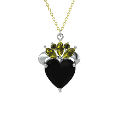 Siyah zirkon ve peridot 14 ayar beyaz altın kolye (40 cm gümüş rolo zincir)