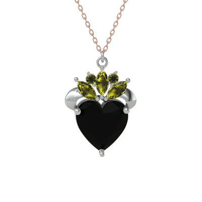 Siyah zirkon ve peridot 8 ayar beyaz altın kolye (40 cm rose altın rolo zincir)