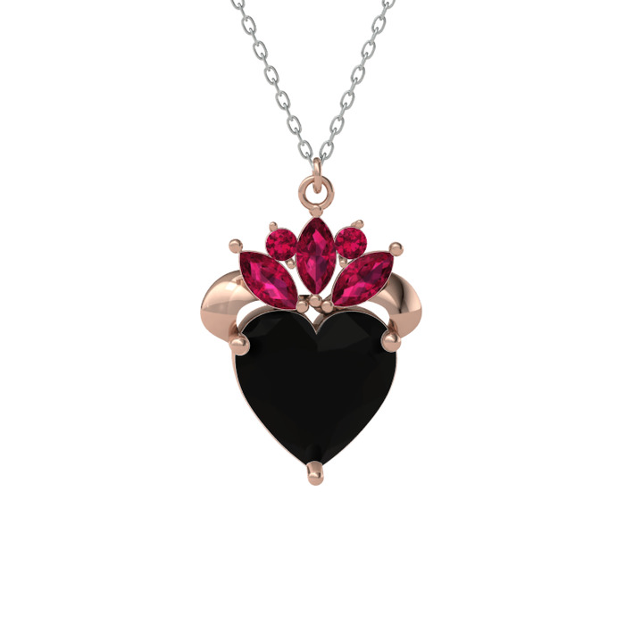 Siyah zirkon ve rodolit garnet 18 ayar rose altın kolye (40 cm beyaz altın rolo zincir)