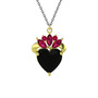 Siyah zirkon ve rodolit garnet 925 ayar altın kaplama gümüş kolye (40 cm gümüş rolo zincir)