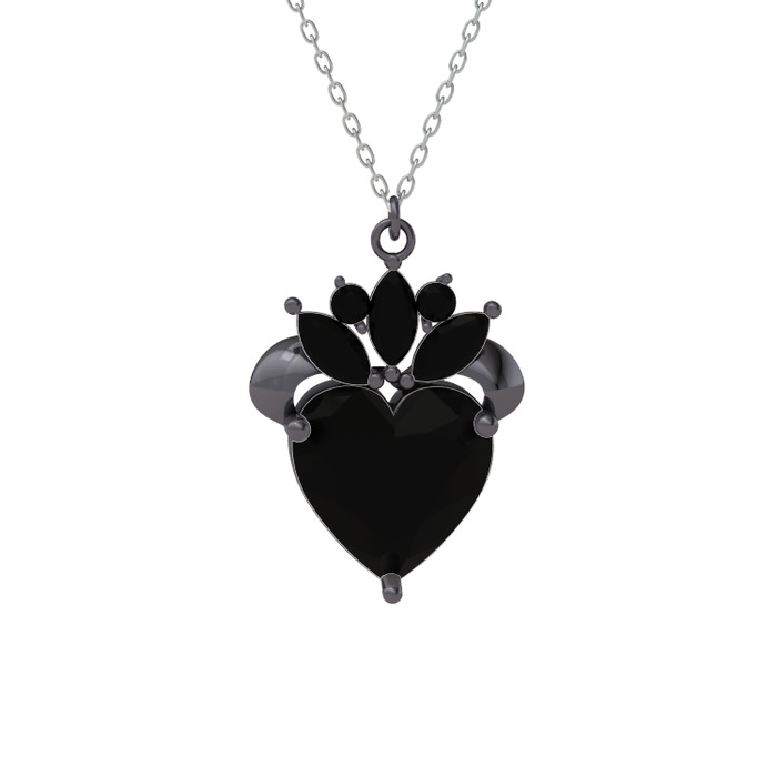 Siyah zirkon 925 ayar siyah rodyum kaplama gümüş kolye (40 cm gümüş rolo zincir)