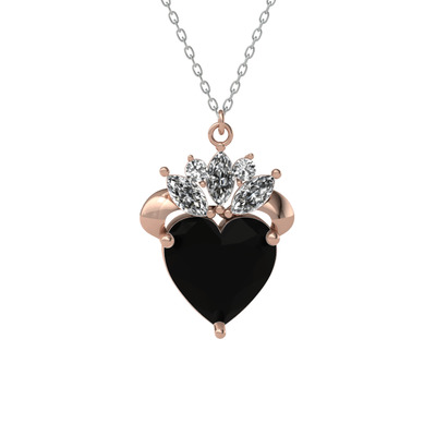 Siyah zirkon ve swarovski 18 ayar rose altın kolye (40 cm beyaz altın rolo zincir)