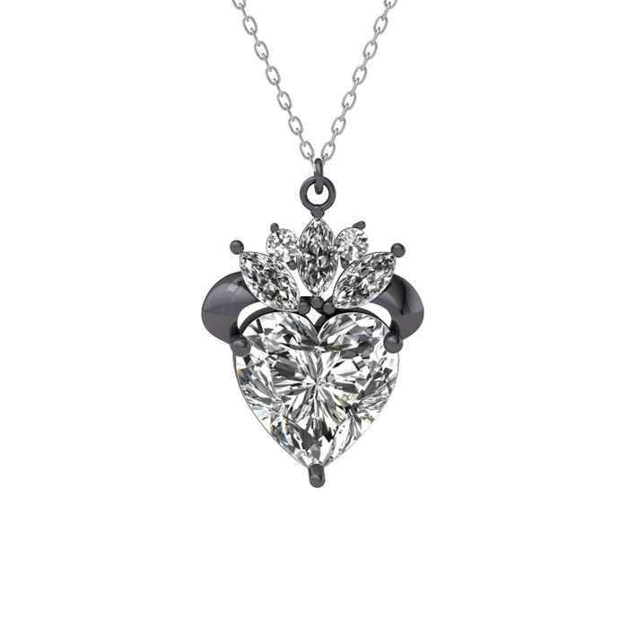 Swarovski ve beyaz zirkon 925 ayar siyah rodyum kaplama gümüş kolye (40 cm beyaz altın rolo zincir)