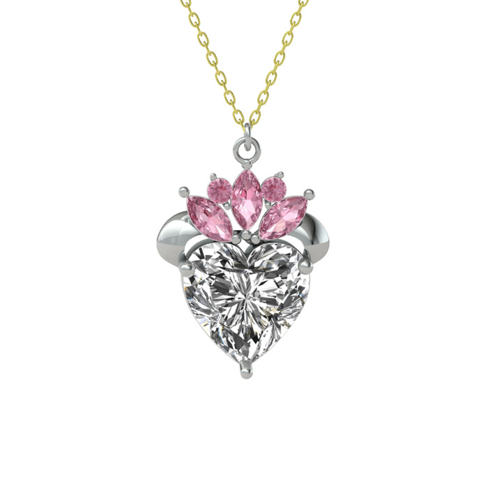 Swarovski ve pembe kuvars 18 ayar beyaz altın kolye (40 cm gümüş rolo zincir)