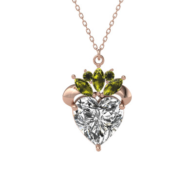 Swarovski ve peridot 14 ayar rose altın kolye (40 cm rose altın rolo zincir)