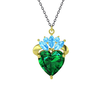 Yeşil kuvars ve akuamarin 14 ayar altın kolye (40 cm gümüş rolo zincir)