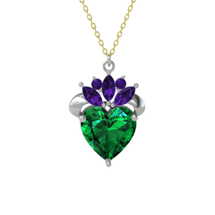 Yeşil kuvars ve ametist 14 ayar beyaz altın kolye (40 cm altın rolo zincir)