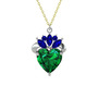 Yeşil kuvars ve lab safir 14 ayar beyaz altın kolye (40 cm gümüş rolo zincir)