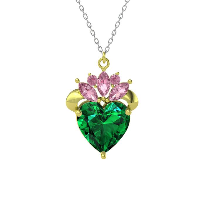 Yeşil kuvars ve pembe kuvars 14 ayar altın kolye (40 cm beyaz altın rolo zincir)