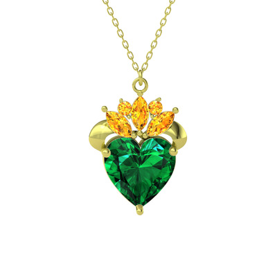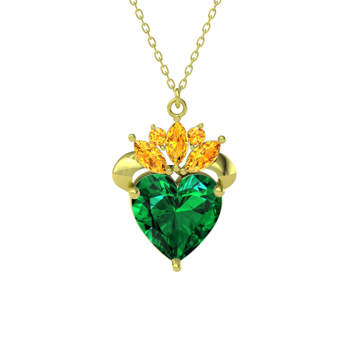 Yeşil kuvars ve sitrin 18 ayar altın kolye (40 cm altın rolo zincir)